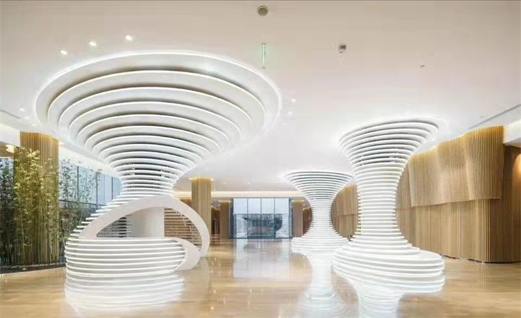 在现代商业综合体设计中,吊顶、拦河、柱子作为空间视觉核心,既要满足美学创意,又要兼顾结构安全、施工效率与长期耐用。GRG(玻璃纤维增强石膏)凭借轻质高强、造型自由、防火环保、声学优异等优势,成为商业空...